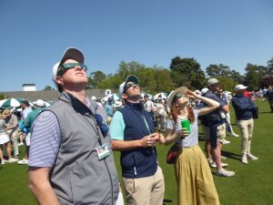 Patrons paused a few moments on Monday at the Masters to look at the Eclipse.