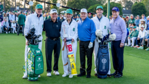 One of the greatest of many great traditions at the Masters is the honorary starters who hit tee shots on No. 1 hole to signal the start of the tournament. Nicklaus hit down the middle, Tom Watson’s swing is still so smooth and the ageless 89-year old Gary Player piped one and celebrated with his patented leg kick. (BTW, some onlookers said Player’s drive soared more than 250 yards down the fairway.)