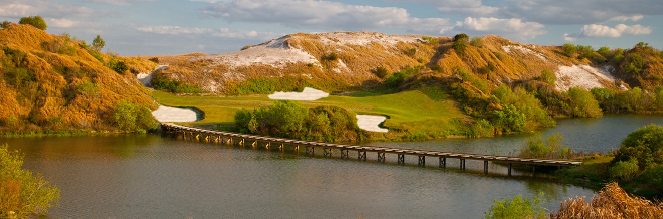 The courses are built on spectacular terrain that legend has Hernando Desoto and his army camped on in 1539. Massive sand dunes, dramatic, undulating landforms and lakes dominate the golf experience. Interestingly, the land was formerly mined for phosphate, which is a key ingredient in fertilizer.